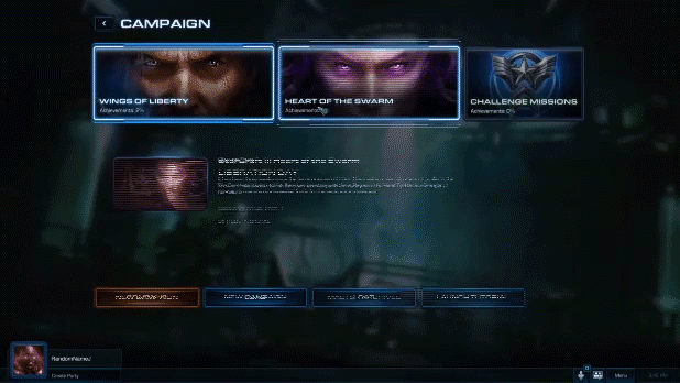 Below you can see just how much cleaner the UI has become. The campaign selection has done away with the large boxes and replaced by the major races that you get to play in each campaign.